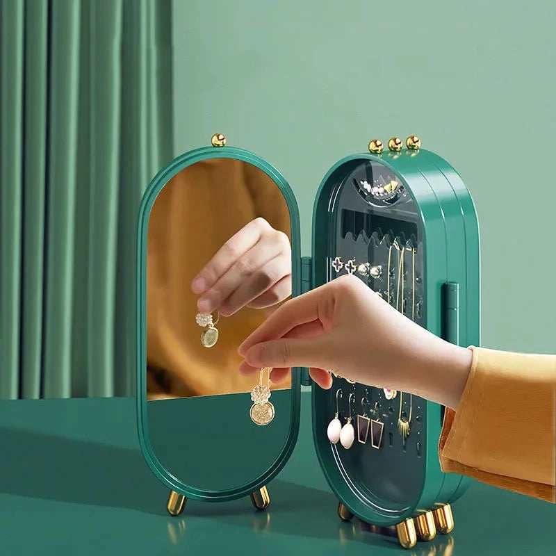 Built-In Mirror: Transform your jewelry routine with the convenience of a built-in mirror. Perfect for quick accessorizing or admiring your favorite pieces before you step out.